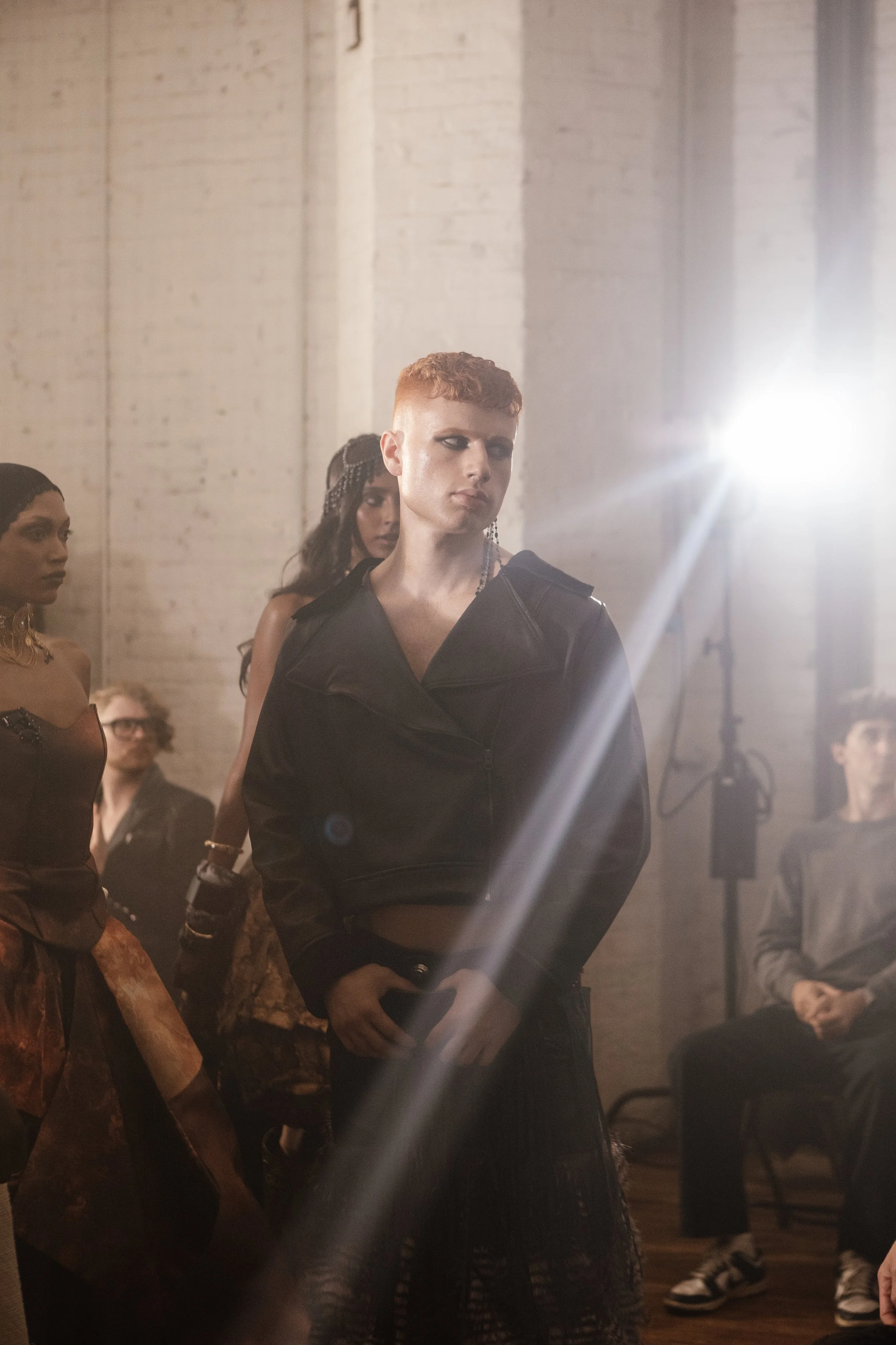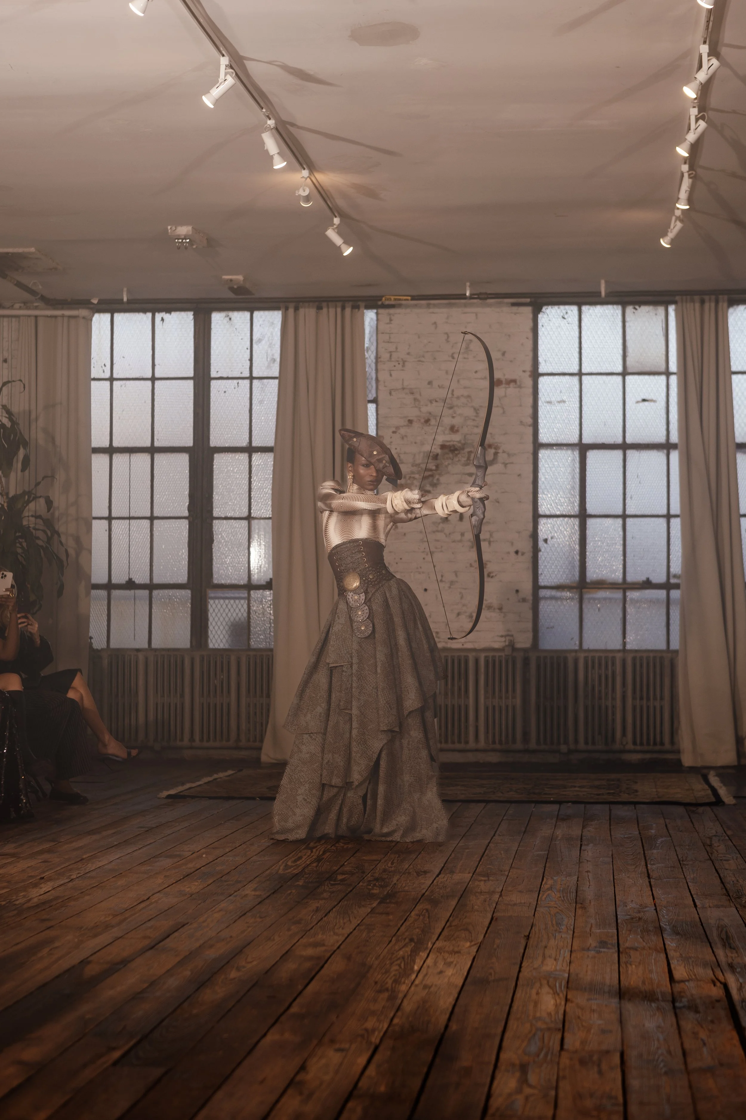 The model entered the runway bow-first — no arrow — scanning the crowd as if searching for anyone with poor fashion taste. Luckily, we all made it out unscathed. But no one will forget the day Marcel Castellano raised the bar for runway storytelling.